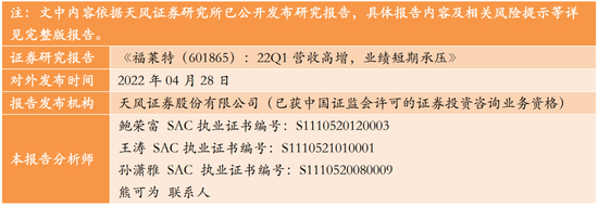 维持盈利预测,维持买入评级。受益行业景气度及公司业务架构优化,我们预计22Q1仍保持可观增长。此前公司发布22年财务预算,预计22年收入同增39%至12.8亿,净利同增53%至1.2亿展现较强成长性,其中22Q1虽阶段性受到疫情影响,但终端表现及订单生产均保持较好势头;此外品牌业务占比提升带动毛利率改善,打开成长天花板。我们预计公司22-23年净利分别为1.22亿、1.8亿,PE分别为24x、16x。