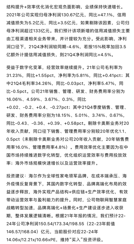 投资建议:维持22、23年营收2127/2765亿元,yoy+38%/+30%,净利润105/149亿元,yoy+49%/+41%的盈利预测。