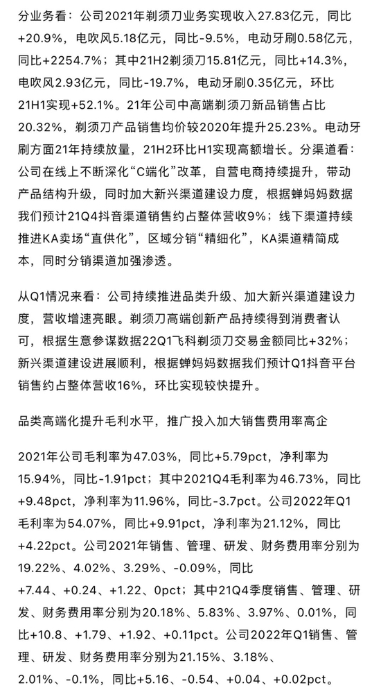Q1业绩同比降低约55.3%,主要受1)深圳部分地区疫情管控,使得公司生产和出运计划收到负面影响;2)公司根据年初制定的研发计划和预算,将2022年的研发开支提至16.8亿元(2021年为6.7亿元人民币),使得单季度研发开支同比有较大增幅。我们认为,由于国内电子烟监管正处于过渡期,国内电子烟市场零售店主观望情绪较重,因此品牌上游订单在近期相对较弱;在国内监管及运行体系开始顺利实施后,我们认为国内电子烟市场销售有望在下半年步入正轨,公司国内外业务均有望呈现较好增长趋势。