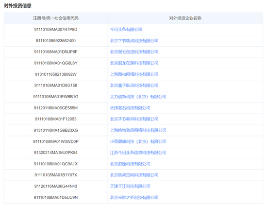 此外,据国家企业信用信息公示系统显示,原字节跳动有限公司(已更名为抖音有限公司)旗下的北京字节跳动科技有限公司也已更名为北京抖音信息服务有限公司。
