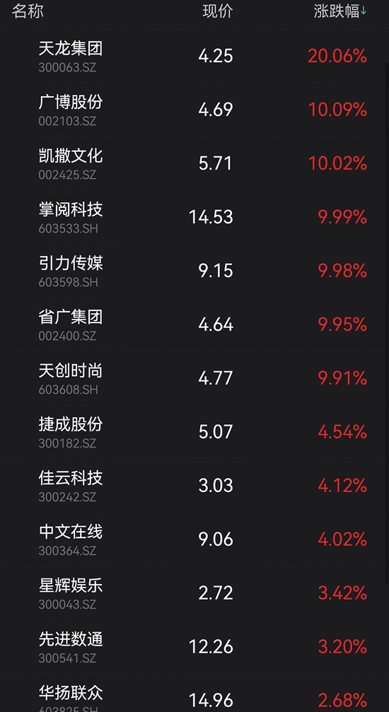 截至当日收盘,曾公开表示与字节跳动有业务合作的掌阅科技、引力传媒、天龙集团、凯撒等公司纷纷冲上涨停,多只相关股票价格大幅上涨。