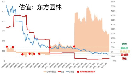看东方园林这个可以发现,尽管静态地看当时已经是10倍的估值,很便宜了,但是它的内在价值是不断走低的,股价越跌越高估。