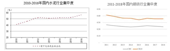 行业内现有企业的竞争:水泥行业的行业集中度是不断提高的,但是同期钢铁行业的集中度反而是下降的。