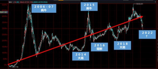 这当中经历了2006、2007年的疯牛,2014年的大底,2015年的疯牛,然后到了2016年的熔断,再到2018年的中美贸易战及民营经济退场论的恐慌,然后到了现在。