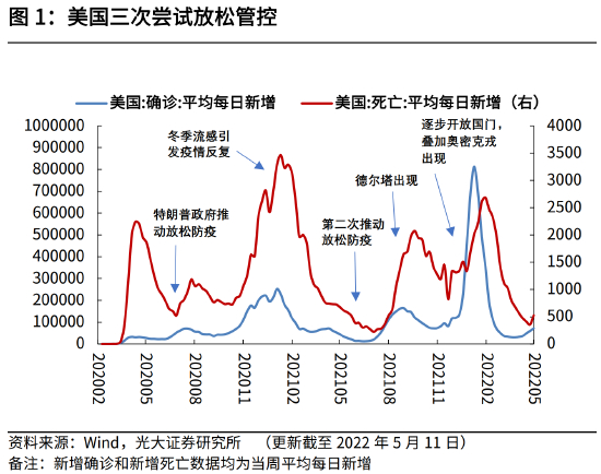 1.1 美国:三次尝试放松,以加强针、特效药等压低曲线