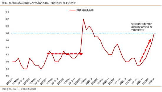 2、就业方面,上海疫情爆发之前,城镇调查失业率已经快速攀升,截至3月,已经上升至5.8%,接近2020年2月武汉疫情冲击最为严重时期水平,而20年武汉疫情之前,失业率相对平稳,维持在5.0-5.2%之间的位置。