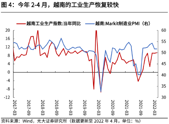 1.1、4月以来,越南疫情明显缓和,生产逐步恢复