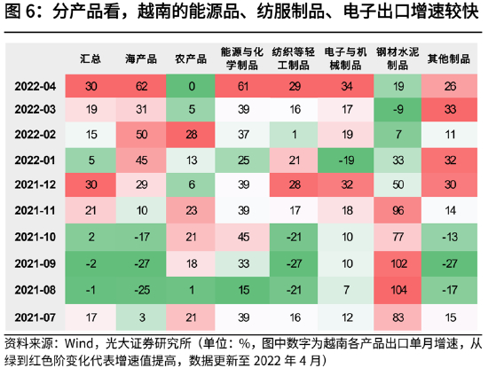 2.2、越南的出口替代效应更多体现在轻工产品领域