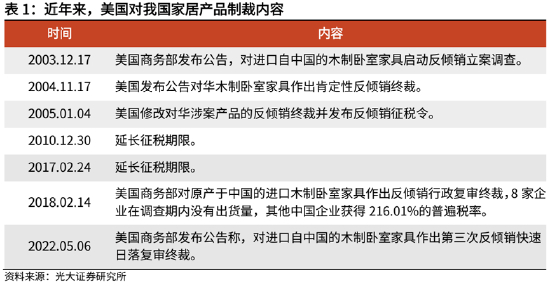 2005年起,由于美国对华征收反倾销税,我国家具企业开始布局向越南转移。2004年,美国发布公告,对华木制卧室家具作出肯定性反倾销终裁。2005年,美国修改对华涉案产品的反倾销终裁并发布反倾销征税令。此后,美国分别于2010年和2017年两次延长了征税期限,分别对应我国家具类企业向越南转移的两次浪潮。中美贸易发生摩擦后,美国对我国价值340亿美元商品加征了25%的关税,进一步加速了家居企业的外移。