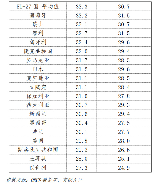 初婚平均年龄推迟,并不是中国的独有现象,而是许多发达国家的普遍现象。根据经合组织的数据,2019年主要发达国家的平均初婚年龄如下表: