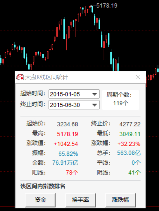 2015年上半年,上证指数暴力上涨32.23%!来到4300点附近后继续快速攀升,并在6月12日创下新高5178点,市场情绪正当狂热。