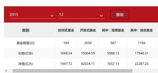 2015年底,普通股票型基金的规模仅为7657.13亿元、混合型基金2.23万亿元,全市场基金总量2722只。
