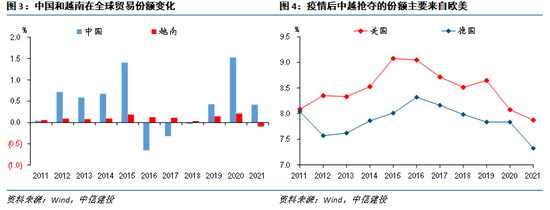 相反,今年出口的核心风险在于全球外需的下滑,而非订单外流。目前欧美经济本身已度过高点,高通胀和央行的集体紧缩进一步带来需求的负反馈,外需拉动或进入一段低谷时期。越南研究系列第三篇,对市场关注的中国出口订单外流、越南蚕食中国份额问题进行分析。我们认为,中国的产业链和供应链的竞争力仍远超越南,订单确实在外流,但更多是全球贸易格局下的结构性调整,越南在短期难以形成实质性的替代。