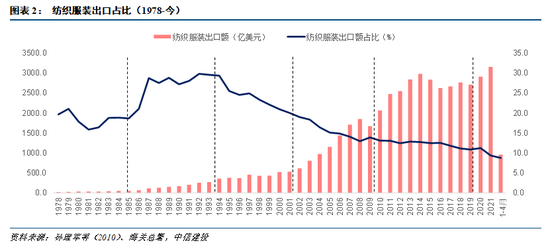 2009年,我国改革开放走过三十年,居民收入有了大幅提高,国内劳动密集型行业开始面临劳动力成本抬升的问题,部分纺织服装业开始前往东南亚等劳动力成本更低的国家。2010年,越南超过中国成为耐克全球最大代工厂,2014年,我国纺织服装品出口总量达到阶段性顶点,之后纺织服装出口总量开始回落。