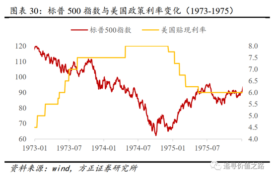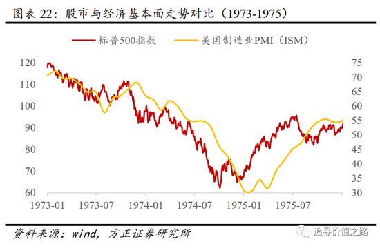 从时间顺序上大家可以发现,美国经济下行是从1973年年初开始的,通胀上行是从1972年底开始的,美股下跌是从1973年年初开始的。而石危机是在1973年10月美股已经下跌大半年以后爆发的,因此石油危机并不是当时美股下跌的导火索,只是一个放大器,类似2022年俄乌冲突的影响。
