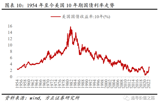 考虑到虽然美债利率过去一年有大幅上行,但其绝对水平依然处在历史上较低位置(参见图表10),因此纳入利率因素后的美股相对估值水平会更低一些。