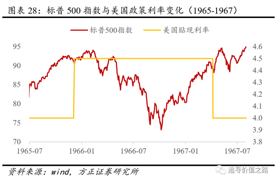 从历史经验来看,过去19次美股大跌中,“经济下行+美联储加息+经济衰退”组合一共发生过6次,分别是:1948年6月至1949年6月、1953年1月至1953年9月、1957年7月至1957年10月、1968年11月至1970年5月、1973年1月至1974年10月、1980年11月至1982年8月。这6次大跌平均下跌时间是13.9个月,标普500指数平均跌幅为28%。