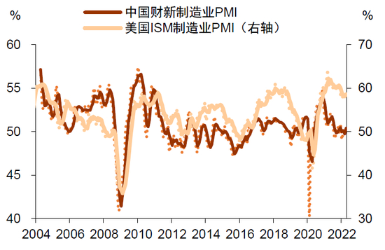 展望下半年,外部看,大宗共振方面,俄乌冲突带来成本推升的通胀;外需传导方面,美欧增长放缓压制需求驱动的通胀;汇率传导方面,人民币汇率或前弱后稳/强,减轻输入性通胀压力。内部看,疫情反复与金融周期下行压制内需,中美通胀分化或继续。一方面,疫情和冲突同是供给冲击,但影响不同。冲突是单纯的供给冲击,而疫情是凯恩斯型冲击,且有不确定性,后者虽也影响供给,但对需求的乘数影响更大更久。另一方面,中美政策应对不同,通胀压力有异。应对疫情,美国是财政投放基础货币,改善私人资产负债表,需求更强,通胀压力更大;中国是信贷投放派生货币,私人资产负债表弱化,通胀压力更小。