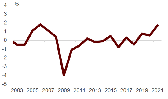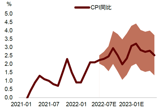 CPI方面,疫后需求复苏叠加猪周期上行,消费价格或将上行,但中枢或仍温和。猪周期拐点已至,但产能结构优化下反弹高度或难强。国内口粮供给有保障、且对外依存度低、库存仍高,国际粮价对国内传导或较边际。近期疫情得到控制后服务和耐用品价格或将修复,但非食品消费品CPI同比或随PPI放缓。我们预计全年CPI同比中枢或为2.1%左右,仍较温和,22Q3-23Q2四个季度CPI同比分别为2.6%、2.3%、3.0%、2.7%。
