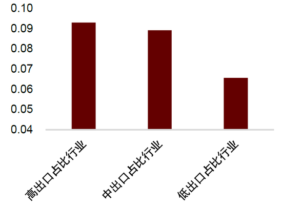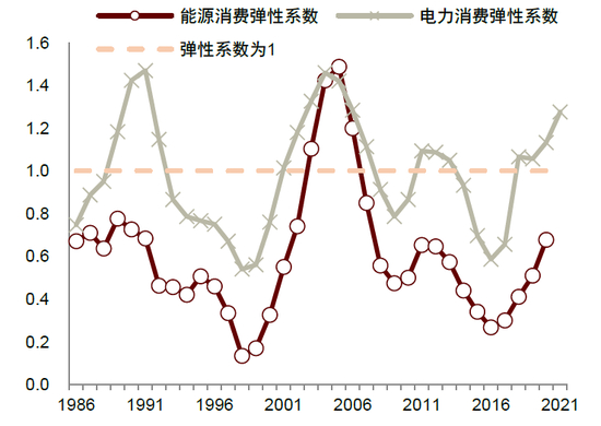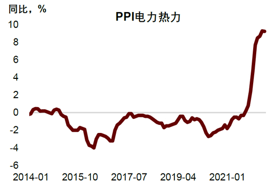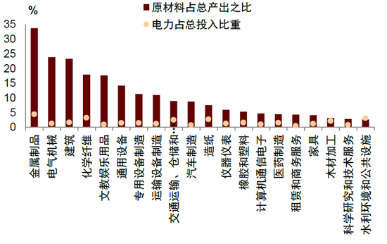 而高出口行业能耗强度更高,不仅通过推升总需求进而推升能耗,还推升了单位GDP的能耗弹性,加剧能源短缺和通胀压力。去年的煤电短缺,一方面通过电价上涨直接推升其他行业的用电成本;另一方面缺电限产导致高耗能原材料行业供应减少、价格上涨,进一步推升总体通胀。尽管电力只占中下游行业成本的不足3%,但考虑到所有原材料行业,在下游行业总投入的占比可以高达15-50%。从CGE模型的测算看,He等(2010)[7] 研究结果显示,电力价格每上升10%,CPI将上升0.7%,PPI非金属矿物制品、金属冶炼、金属制品、煤炭开采、石油天然气加工、机械制造、食品的价格将上升0.6%-1.2%。