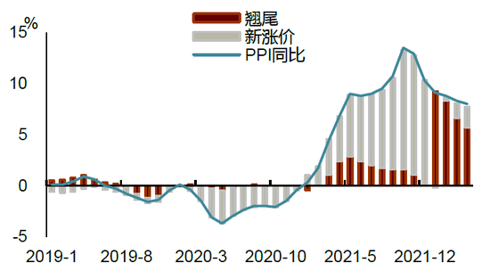 图表41:分结构看,工业品价格同比中新涨价因素贡献上升,这与俄乌冲突有关