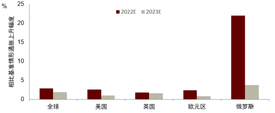 风险情形下,如果欧美对俄制裁以及俄罗斯反制裁导致大宗供应风险超预期,布伦特油价下半年或维持在130美元/桶,其他大宗价格亦进一步上扬。今年PPI同比中枢或上移至7%,三四季度分别为6.5%、5.6%,全年CPI同比中枢或上升至2.5%,高点或在4%左右,三四季度分别为3.2%、3.7%。