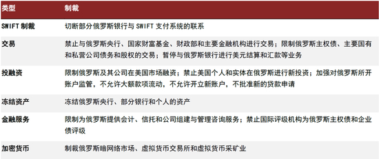 图表2:俄乌冲突背景下,西方对俄罗斯的金融制裁