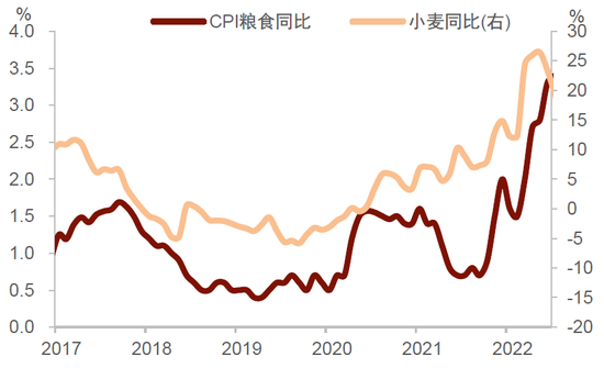 图表52:CPI粮价同比与小麦价格同比高度相关