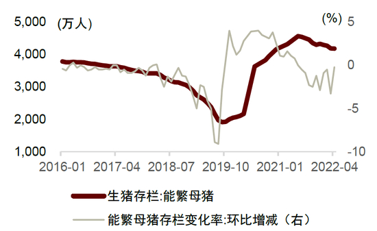 图表54:受疫情影响,能繁母猪存栏环比下降较慢