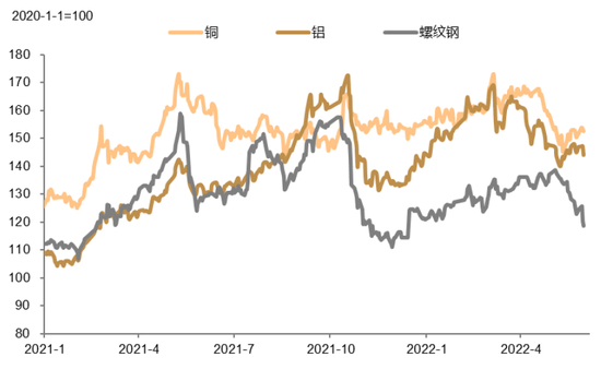 黑色金属稳增长和限产预期支撑,但成本或下行,涨价压力缓解。需求侧,前期基建投入的落实与地产约束放松后的反弹幅度或带来刚需改善,但地产或疲弱,稳增长落地需求待观察。供给侧,前期国家发改委表示今年将继续压减粗钢产量,原材料需求上升空间有限,成本下降带动钢价回落。且巴西雨季后,澳巴铁矿石发运量近期企稳回升,中金大宗组预计下半年将缓解供给约束。海外有地缘风险和衰退预期扰动,原材料成本通胀压力或有缓解。据中金大宗组预测,今年2-4季度,铁矿石和螺纹钢或从140美元/吨和4950元/吨逐季下行至105美元/吨和4600元/吨。