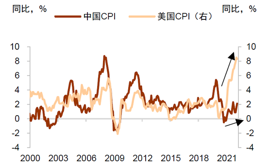 二是由于疫情政策不同。中国采取更为严格的疫情管控政策,但对需求的短期抑制也更强,中国通胀压力也更小。目前中美的CPI与PPI走势已经呈现了明显的分化。