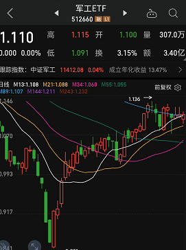 军工ETF自净值0.851低点以来一路反弹,截至发稿报1.11。