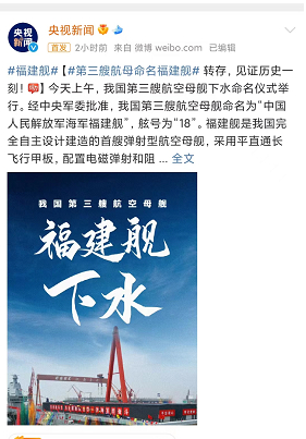 在知乎上也有人神预言,发帖人称第三艘航空母舰只能叫福建舰,并崔第四艘和第五艘航空母舰做了预言。