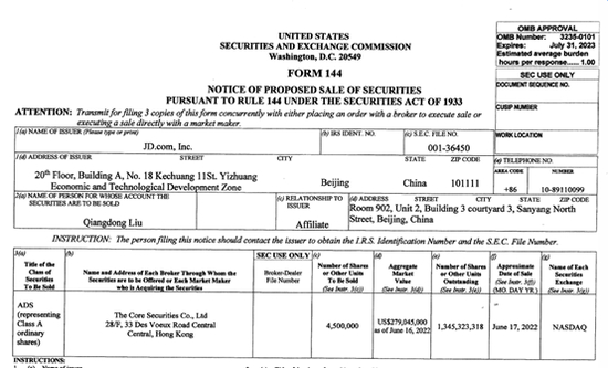 美国证监会近日披露的数据显示,刘强东于6月17日减持了京东A类普通股450万股,按照6月16日的价格估算,价值2.79亿美元,约合人民币18.71亿元。