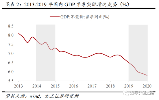 2019年情况相似,国内GDP单季实际增速逐级下行,从一季度的6.3%一路下行至2019年四季度的5.8%,当年A股市场同样出现明显上涨行情,2019年万得全A指数全年大涨33%。