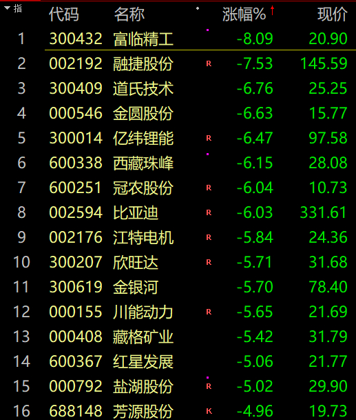光伏、锂矿等板块大幅下挫。