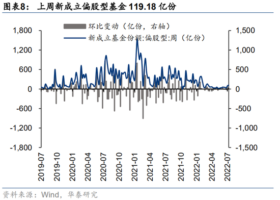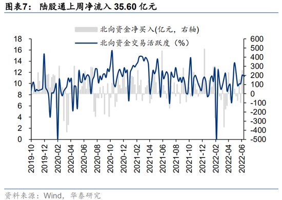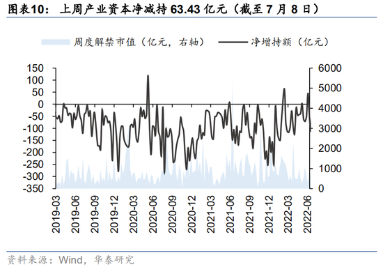 外资方面,上周北向资金净流入35.60亿元,主要净流入医药(+34.31亿)、食品饮料(+32.87亿)、有色金属(+31.11亿)、电力设备及新能源(+29.65亿)、电力及公用事业(+13.74亿),主要净流出机械(-35.67亿)、银行(-11.52亿)、煤炭(-10.67亿)、建筑(-6.63亿)、通信(-6.01亿元);公募方面上周新成立偏股型基金119.18亿份,较前一周(99.42亿份)有所上升;杠杆资金方面上周融资成交占两市总成交比重为8.23%,较前一周有所下降(8.39%),融资净买入额204.91亿元,较前一周有所上升(203.61亿),分行业来看,上周银行(+1.41pcts)、综合(+0.78pcts)、农林牧渔(+0.74pcts)、基础化工(+0.62pcts)、纺织服装(+0.45pcts)板块的融资交易活跃度升幅较高,非银行金融(-2.00pcts)、计算机(-1.19pcts)、通信(-1.18pcts)、综合金融(-1.16pcts)、电子(-1.02pcts)融资交易活跃度升幅较低;产业资本方面,上周产业资本净减持63.43亿元,较前一周从净减持大幅减少(177.53亿)。