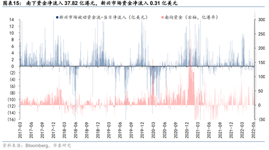 上周追踪新兴市场权益的前50大ETF净流入0.31亿美元,环比减少0.16亿美元;南下资金净流出37.82亿港元,与上一周(流入170.60亿港元)相比有所下降。从分行业南下资金的分布来看,半导体与半导体生产设备(+7.10亿港元)、软件与服务(+4.81亿港元)、运输(+2.27亿港元)、公用事业Ⅱ(+1.88亿港元)、制药、生物科技与生命科学(+1.56亿港元)板块净流入居前;汽车与汽车零部件(-20.26亿港元)、零售业(-18.67亿港元)、耐用消费品与服务(-9.29亿港元)、食品、饮料与烟草(-9.01亿港元)、多元金融(-7.47亿港元)等板块净流出居前。