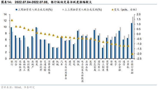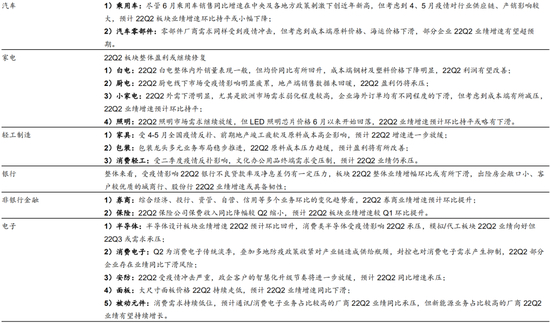 6) 大金融&地产方面,22Q2地产销售数据欠佳,地产板块中报业绩增速预计环比进一步下降;22Q2银行不良资产率及净息差均有一定压力,预计银行板块整体22Q2业绩增速环比小幅下降。