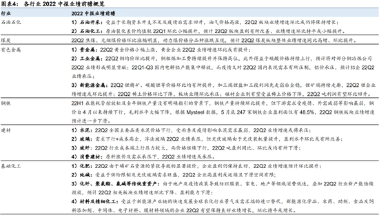 进一步,通过整合华泰各行业团队发布的中报业绩前瞻,并结合定期追踪的景气数据,我们对A股各行业主要细分行业进行了中报前瞻综述,详情见图表4: