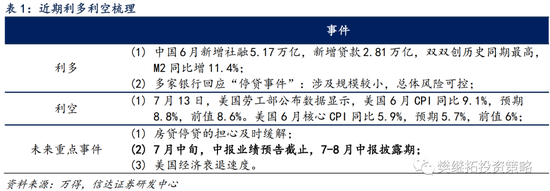 美国的次贷危机,是一个非常漫长的过程。最先的拐点性变化是美联储2004年下半年加息,加息1年后,住房销售面积才拐头,随后又过了1年,房价开始见顶回落。在此期间(2004-2006年),美国股市持续新高,房地产下行风险传导到金融领域是从2007年上半年开始的。传导链条中最大的因素是房价,2007-2008年和2020年疫情后,美国都出现过房贷违约率上升,但由于2020年房价是涨的,所以并没有出现风险扩散。过去1年,虽然国内房地产销售大幅下滑,但房价依然健康。这意味着,资产质量本身尚没有问题,只是现金流出现了问题。在整体利率比较宽松的情况下,现金流出现的问题,是可以通过政策应对及时解决的,当下的风险远小于08年美国次贷。7月由于中报、商品价格下行、房地产担心,股市出现了些短期风险,我们认为,这一风险持续的时间大概率不会太久。2022年全年的V型还没走完,V型反转的终点可能在Q4,随后会进入震荡市。