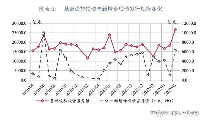 从稳经济角度来看,投资作为今年经济增长的重要支撑,一方面专项债资金对投资的拉动作用较为显著,上半年专项债拉动配套融资约5300亿元,另一方面专项债资金投向的主要领域为基建领域。根据披露,第一季度新增专项债投向基建的比例约在78.5%。但是,考虑到3000亿开发性、政策性工具可以为专项债项目资本金搭桥,提前下达并发行专项债的必要性下降。