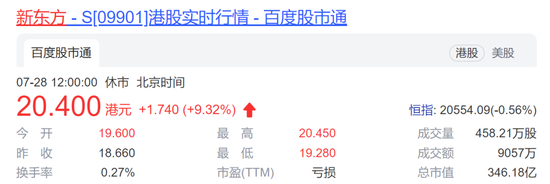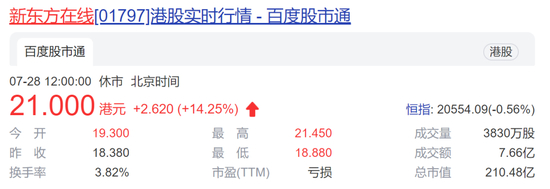 7月28日,新东方在线和新东方港股双双大涨。截至发稿,新东方在线股价重回21港元上方,现涨超15%,新东方现涨超8%。