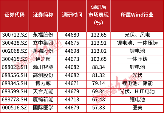 除了锂电池、一体压铸等概念股,光伏概念股永福股份(近期宣布进军户用光伏市场)、高测股份(光伏切割一体化),以及上述提到的医美概念股如国际医学等,在混沌投资调研后股价也迎来大幅上涨。