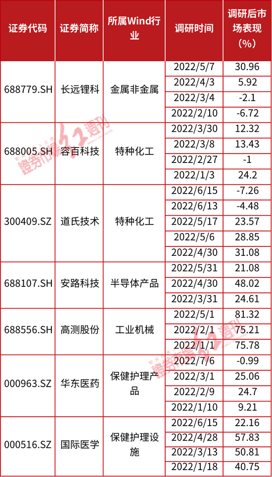 相关个股包括锂电池长远锂科、容百科技、道氏技术等;光伏概念股高测股份;医美华东医药、国际医学等。从调研内容来看,主要聚焦于上市公司在相关热门题材领域的业务布局。