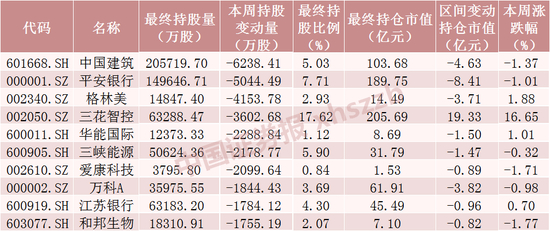 本周北向资金减仓股数前十个股