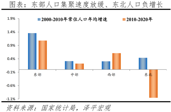 当前中国人口流动呈现回流川渝鄂和粤浙人口集聚并存的特点。改革开放后至2010年左右,人口大规模向出口导向型的沿海发达地区流动。2010年以来,随着沿海地区产业转型升级、中西部地区产业承接以及老一代农民工老化,部分人口逐渐回流中西部,东部人口增速总体减缓,而东北地区人口开始负增长。2000-2010、2010-2020年东部人口年均增速从1.4%降至1.1%,东北从0.4%降至-1.1%。当前人口回流明显的是四川、重庆、湖北,常住人口年均增量分别从2000-2010年的-19、-17、-23万增至2010-2020年的33、32、5万人,人口增量由负转正。广东、浙江常住人口年均增量分别从2000-2010年191、85万增至2010-2020年的217、101万,人口持续集聚。