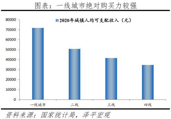 2.4 购买能力:一二线城市绝对购买力较高,相对购买力较低