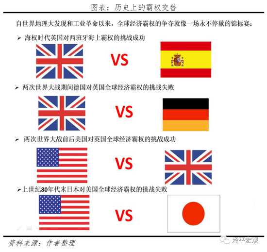 历史上几次世界性经济大国崛起对当时世界政治经济格局都产生了重大而深远的影响。以足够长远的历史视角来看,自世界地理大发现和工业革命以来,全球经济霸权的争夺就像一场永不停歇的锦标赛。