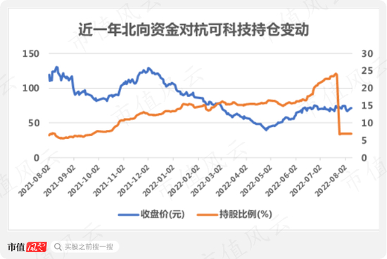 但实际上,过去一年北向资金不断买入杭可科技,尤其从2022年6月初起就加仓,7月21日持股比例达到最高,为24.15%,短短36个交易日,涨幅为24.84%,还是很香的。